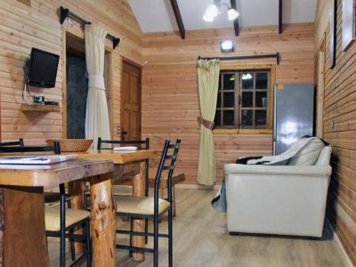 Las cabañas están equipadas con todas las comodidades necesarias para una estancia confortable, incluyendo una cocina completa, baño privado, televisión por cable y Wi-Fi gratuito. Además, los huéspedes tienen acceso a una piscina al aire libre, una zona de barbacoa y una sala de juegos común.