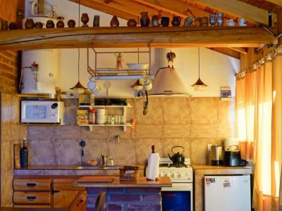Cottage with a rustic style and stones on the outside, inside warm and cozy built in wood, offering a homey style.
