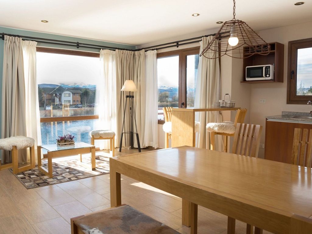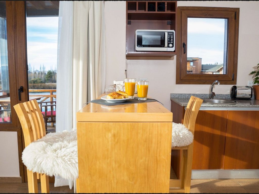 Its elegantly equipped apartments offer everything you need for a comfortable stay: TV with DIRECTV, Smart TV with Netflix. Kitchen equipped with microwave, electric oven, electric grill, toaster, refrigerator, stove, and coffee maker. Large windows that allow you to enjoy panoramic views of the lake or mountains. Some of them even have a private balcony or patio, ideal for relaxing outdoors.