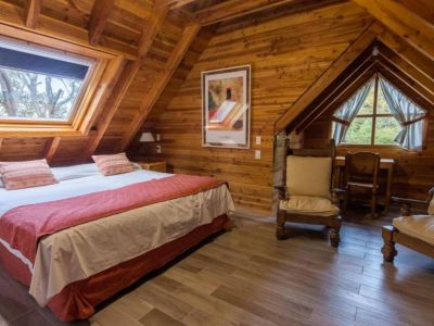 Las cabañas tienen un estilo rústico y acogedor. Cuentan con todas las comodidades para una estadía confortable, incluyendo cocina completa, living comedor con hogar a leña, dormitorios con vista al lago y baño privado.