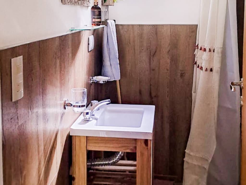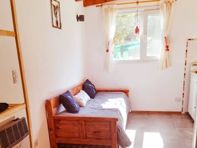 La cabaña está diseñada para albergar hasta tres personas con total comodidad. Dispone de un cálido dormitorio y una cama adicional en el living, ofreciendo flexibilidad para adaptarse a las necesidades de cada huésped. La cocina, completamente equipada, permite preparar comidas caseras, mientras que el baño completo proporciona todo lo necesario para una estancia agradable. Además, los huéspedes pueden disfrutar de la parrilla y el patio, perfectos para una comida al aire libre o un momento de relajación en medio de la naturaleza.