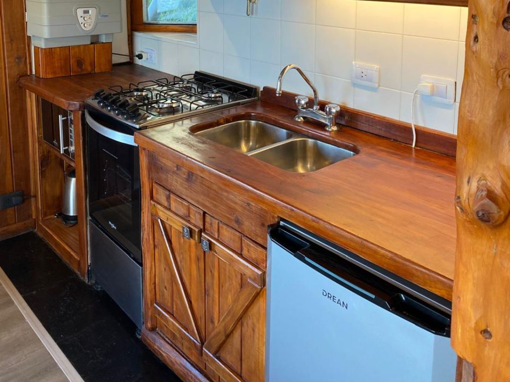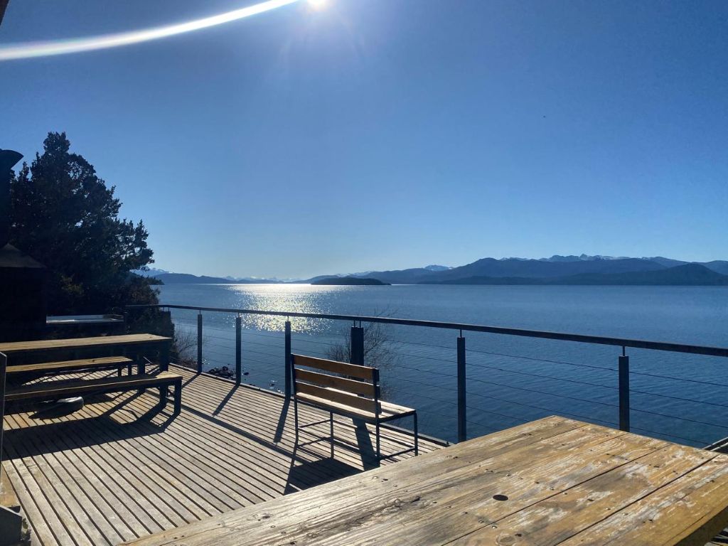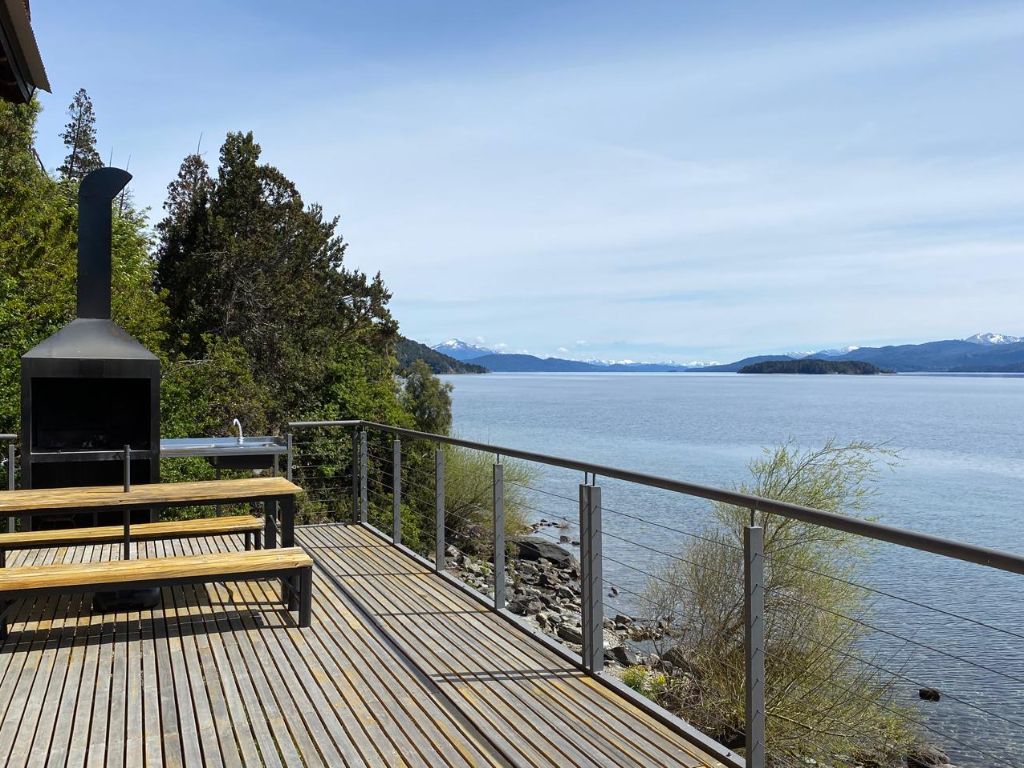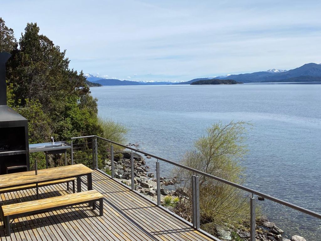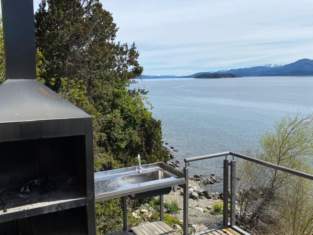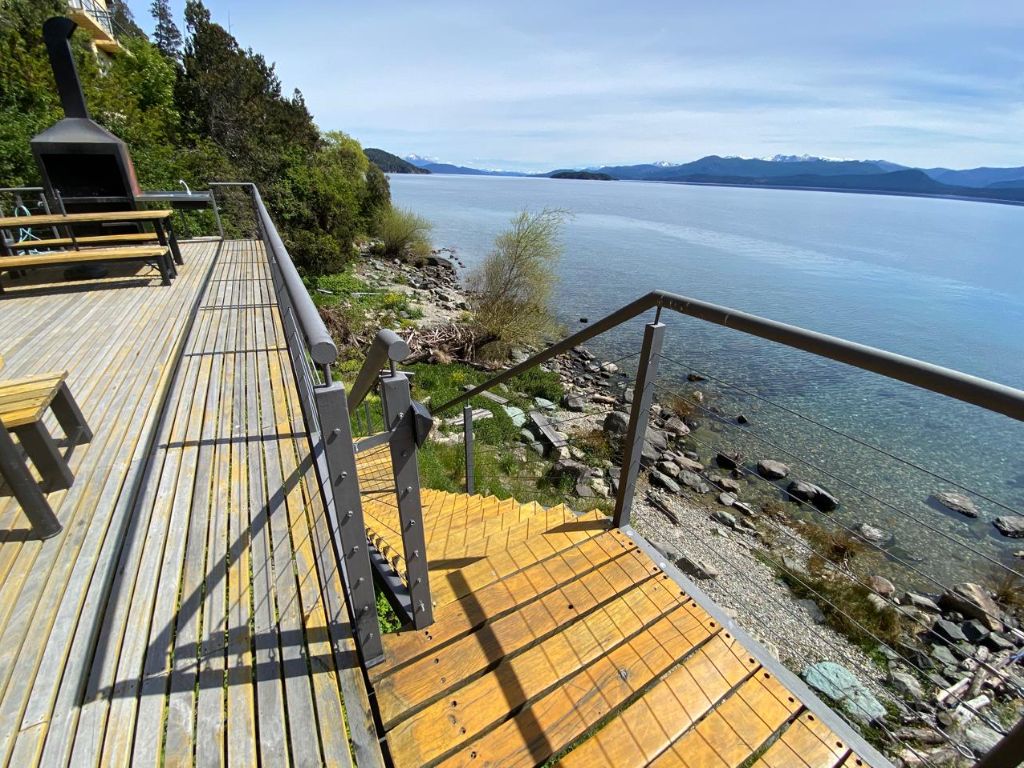 El edificio cuenta con acceso directo a la costa, ideal para quienes buscan relajarse junto al agua o contemplar el paisaje patagónico. En su deck con parrilla, compartido con otros huéspedes, cada atardecer se convierte en un espectáculo inolvidable. Además, dispone de estacionamiento, conexión wifi y una cocina completamente equipada para una estadía cómoda y funcional.