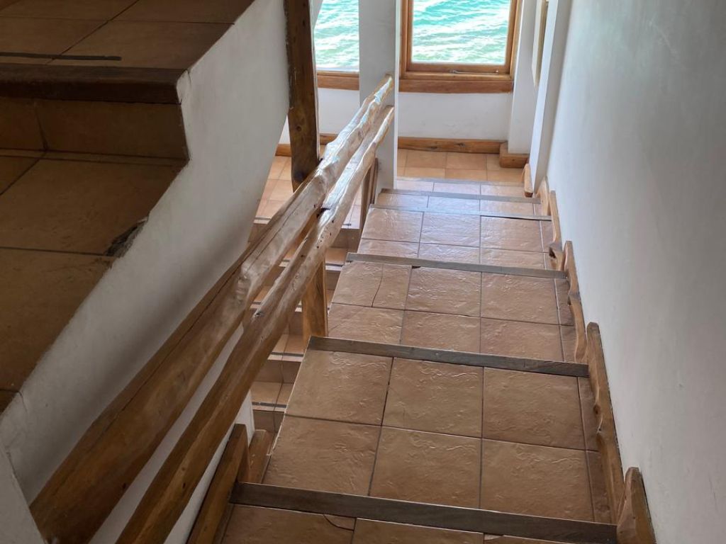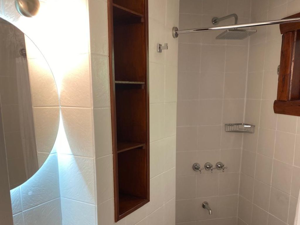 Frente al edificio se encuentra una parada de colectivo que facilita el acceso al centro y otros puntos de interés. Es importante tener en cuenta que el departamento se ubica en un tercer piso al que se accede por escaleras amplias y cómodas, por lo que no resulta adecuado para personas con movilidad reducida. El hogar a leña, de carácter decorativo, aporta un toque cálido y acogedor que invita a disfrutar de cada momento frente al lago.