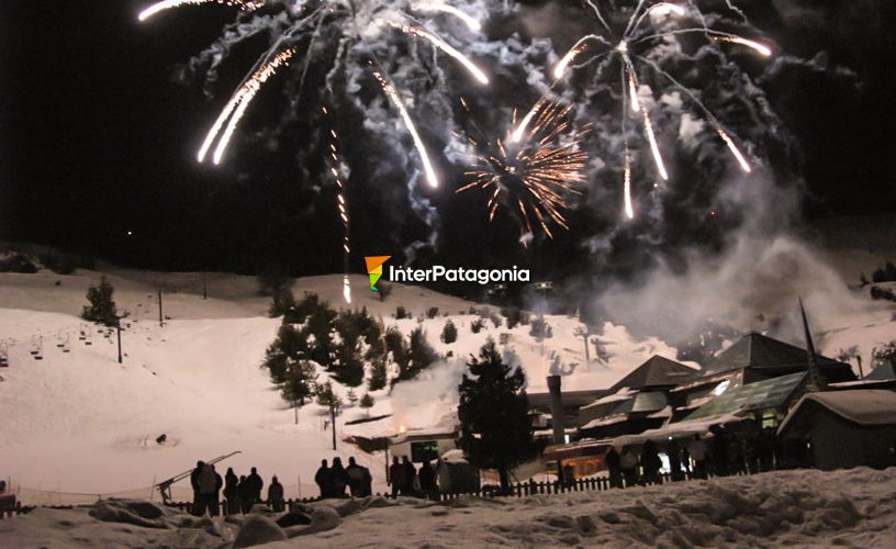 En las primeras horas de oscuridad se realizó la bajada de antorchas, un espectáculo que nos maravilló por la coordinación y la seducción desplegados. La zigzagueante caravana de esquiadores que portaban teas encendidas se deslizó por las pistas lentamente hacia la base; allí depositaban el fuego en una gran hoguera que calentaba la fría noche invernal. Los espectáculos musicales estuvieron siempre presentes, tanto en el cerro como en el pueblo. Músicos nóveles junto a conjuntos afamados subieron a los escenarios; el tango, el rock, el folclore y las danzas alegraron los momentos entre las distintas actividades previstas. El sábado a la noche en el Centro Cívico se realizó la elección de la Reina; la hermosa señorita elegida se paseó al día siguiente en una carroza junto a figuras alegóricas. No faltó el concurso de hacheros, muy esperado por quienes son habilidosos para partir en dos un tronco grueso en pocos minutos. Los inscriptos de todas las edades ya son conocidos por los lugareños y tienen su propia “hinchada” que los alienta año tras año. “¿Fuerza o maña?” era la pregunta de todos. “Maña, por supuesto, y un hacha en buenas condiciones”, nos dijo un participante muy conocido por el público. A pesar del clima cambiante propio de la Patagonia (se vivieron momentos de sol, algunas nubes indecisas y vientos fuertes de a ratos), los presentes acompañaron el festejo. No faltaron los fuegos artificiales y el programa de la Fiesta de la Nieve pudo adaptarse a las condiciones del tiempo, sin detenerse.