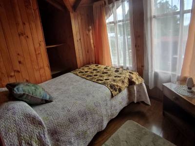 La Cabaña Encantos, located in Castro, Chiloé, offers a unique lodging experience in a breathtaking natural environment. This cozy cabin is designed to provide you with comfort and warmth, with an architectural style that combines rustic and modern elements. Built with local materials, such as wood from the region, the cabin has large windows that allow a direct connection with nature, filling the spaces with natural light and offering unparalleled views of the typical landscapes of Chiloé.