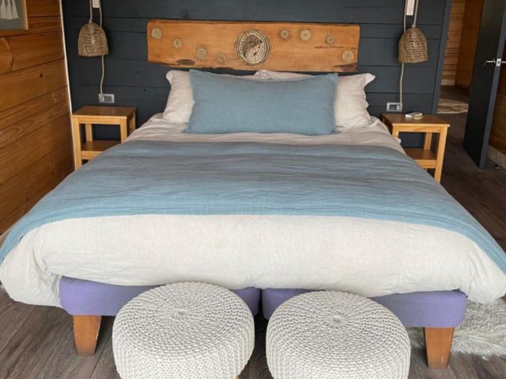 El diseño del hotel refleja la tradición y el estilo arquitectónico de Chiloé, con elementos de madera y detalles que evocan la historia y cultura local, sin sacrificar el confort moderno. Las habitaciones son amplias, luminosas y acogedoras, equipadas con todo lo necesario para asegurar una estancia placentera, incluyendo Wi-Fi gratuito, calefacción y vistas panorámicas. Algunas habitaciones cuentan con ventanales grandes que permiten disfrutar de los amaneceres sobre el mar o las tardes tranquilas sobre la campiña chilota.