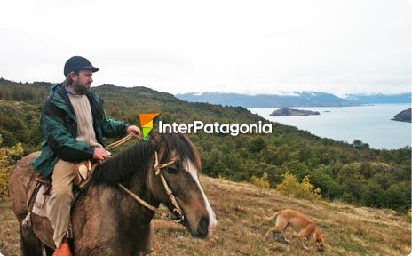 Puerto Guadal, encontramos la entrada a las cabañas Mallín Colorado. La noche ya se había cerrado sobre la ruta y ansiábamos refugiarnos y combatir el frío con algo caliente. Enseguida salió a recibirnos Eduardo Christensen, que nos invitó a la casona para compartir la cena alrededor del hogar. Mientras lo ayudábamos con los preparativos en la cocina, donde en temporada se lucen los cuidados platos caseros, Eduardo nos comentó la historia de este emprendimiento familiar. Hace 10 años que los Christensen compraron el campo a unos pobladores de Guadal y hace 8 que se dedican al turismo, brindando alojamiento y otros servicios turísticos. Como todo al principio, empezaron con una cabaña que construyó el mismo Eduardo cuando se decidió a incursionar en la arquitectura y dejar un poco de lado su profesión de abogado. Luego fueron construyendo otras para recibir más gente. Las riquezas del lugar también los motivó a organizar cabalgatas por el campo, guiadas por el papá de Eduardo, que adora los caballos.