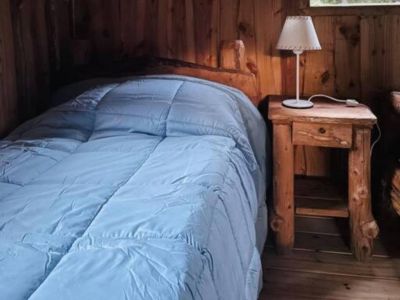 Brinda una cabaña totalmente equipada, con cocina , cafetera, pava eléctrica, ropa de cama.