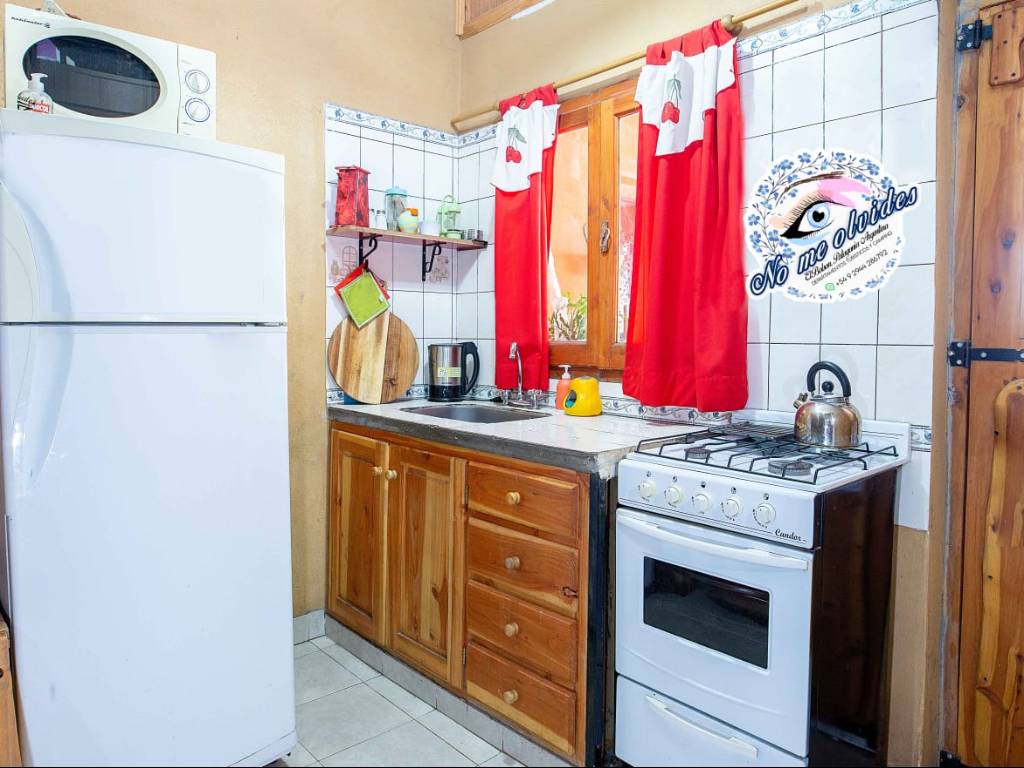 Cada uno de ellos dispone de una amplia cocina comedor. La cocina está totalmente equipada con pava eléctrica, vajilla completa, microondas, heladera, cocina con horno, equipo de mate, café instantáneo, especias, aceite, vinagre y sal.
