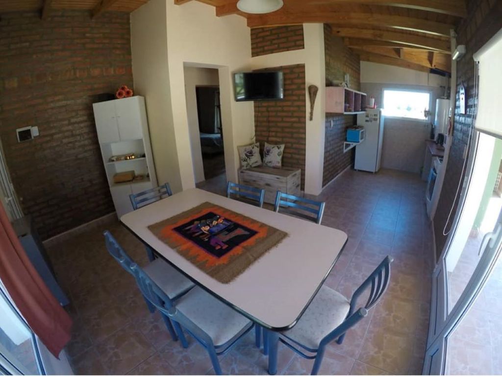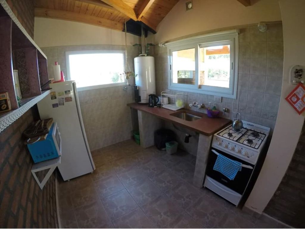 The cabin is fully equipped, with a full kitchen, microwave, refrigerator, linens, and television. It also has a fenced garden, ideal for relaxingenjoying a picnic.