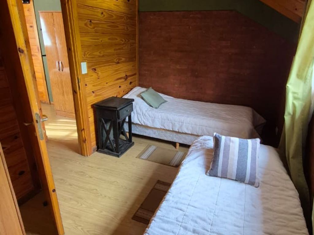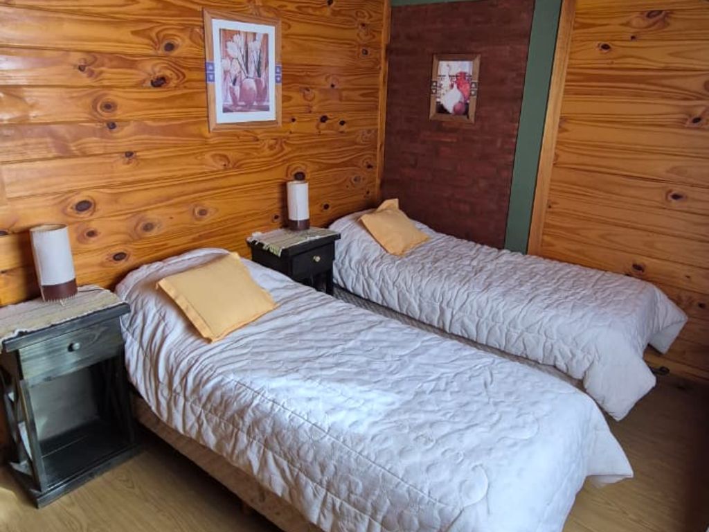 Además está a 600 m de la ruta 40 con fácil acceso al Río Chimehuín famoso por la pesca de la trucha, también ideal para disfrutar de todas las actividades que ofrece la zona en los distintos ríos y lagos: caminatas, bicicleta, rafting. También es muy fácil el acceso al Volcán Lanín o al Lago Tromen para disfrutar de un día de montaña y lago. Las cabañas tienen en el frente mesas y sillas para disfrutar al aire libre, además del estacionamiento gratuito y las parrillas con patio individual. Cada cabaña está construida con materiales de primera calidad, cuenta con dos habitaciones para capacidad máxima 5 personas. Totalmente equipada con vajilla y utensilios de cocina, anafe a gas de 4 hornallas, microonda, horno eléctrico, tostadora, pava eléctrica. Junín de los Andes, un lugar lleno de encanto para desconectarse del ruido y conectarse con la naturaleza.