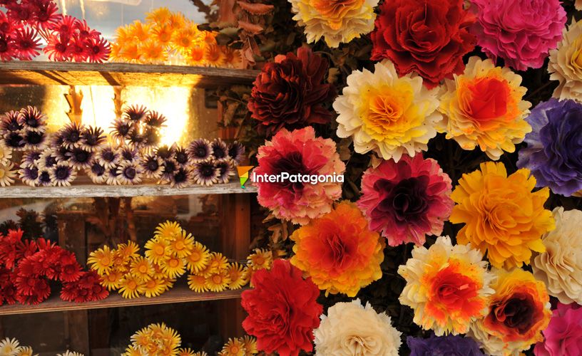 The rest depends on the agile moves of the hands that shape the whicker stick and the wood shaving curls that come out of the lathe and make up the main body of the item. It looks very simple but the craft has its secrets, only known by the artisan who easily puts together hundreds of flowers of different sizes and designs everyday. Each flower has a core, a main body painted with aniline of various colors and a stick that holds it. Wit, skill and habit are the three elements masterfully handled by Juan. There is a giant stall selling these flowers at the exit of Pucón towards Villarrica. The quantity, size and colors of the flowers catch the eye from a distance. This innovative handicraft has led the Castillo family to represent Pucón in other locations on the planet. A tradition that has crossed the border is kept inside a small workshop.