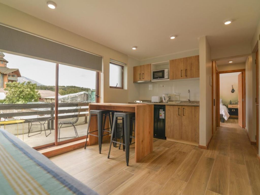 Some rooms offer views of the majestic Villarrica Volcano, known in Mapudungun as Ruka Pillañ. The hotel's central location allows easy access to attractions such as the Enjoy Casino, the Plaza de Armas, restaurants, pharmacies, and various shopping options. In addition, the hotel has a 24-hour front desk to attend to guests' needs and offers a continental breakfast to start the day. For added convenience, some rooms include a fully equipped kitchenette, and parking is available subject to availability.