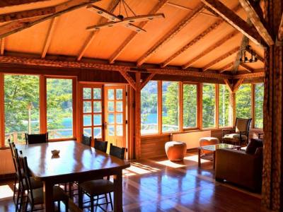 Ofrece 28 habitaciones con un concepto rústico y de alto lujo con espectaculares vistas al Lago Negro.