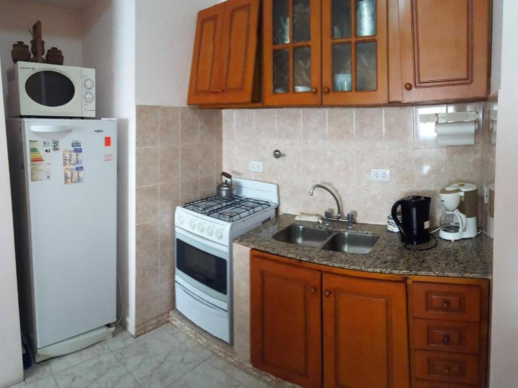 It has apartments with 1 or 2 rooms, with a double and a single bed, a fully equipped kitchen, and a small garden with table and chairs.
