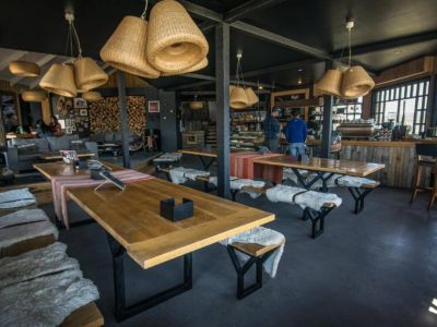 La terraza,incluso arriba de las mesas estaba lleno de bicicletas ,no habia ningun...