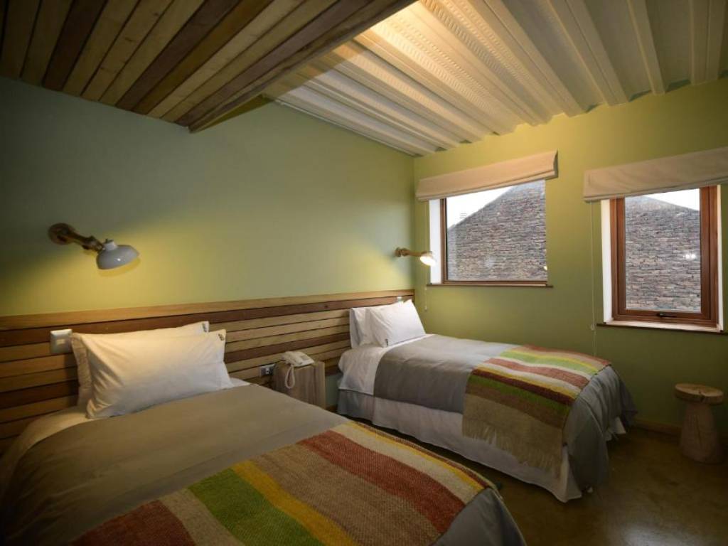 The hotels design revolves around an old brick house, typical of Patagonian architecture. Breakfast is served in this house. All rooms have views of ancient brick walls, the city, the Señoret canal and the snowdrifts.
