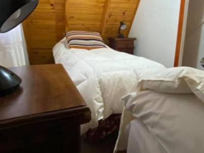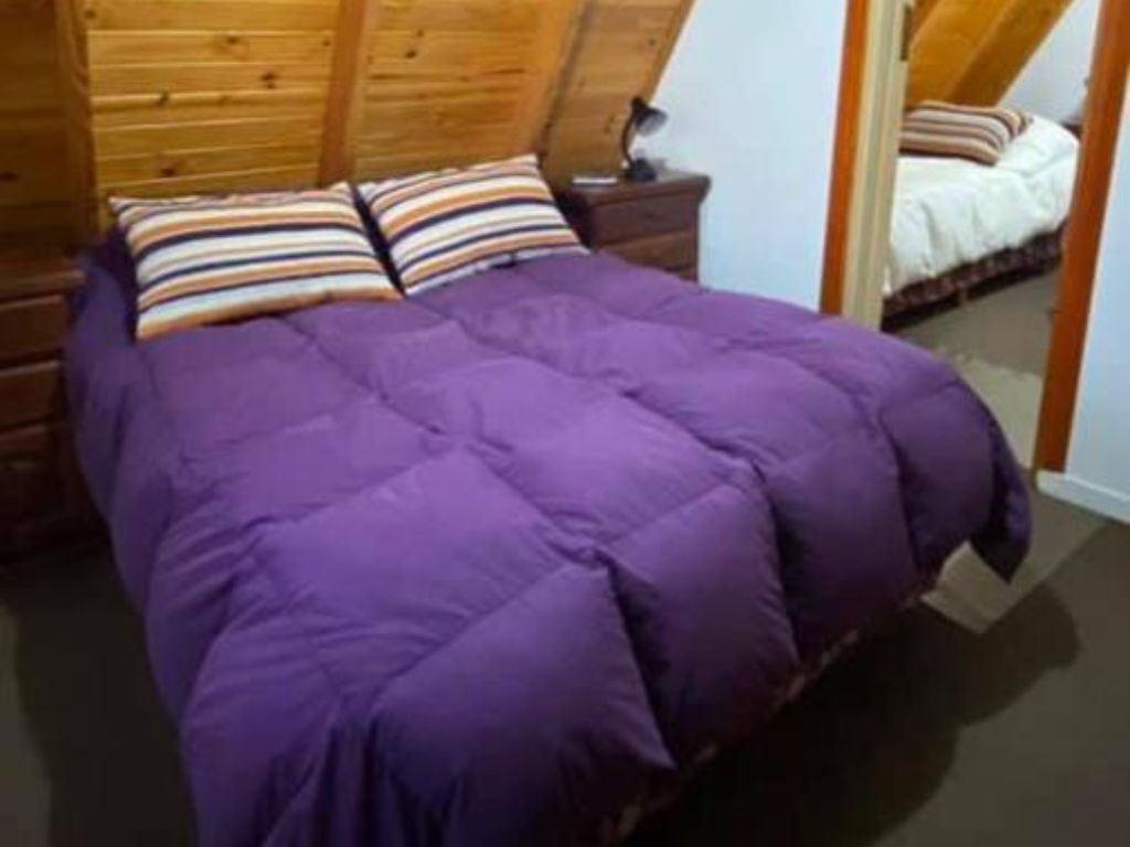 Las cabañas están diseñadas para brindar confort en un ambiente cálido y hogareño. En la planta alta, el dormitorio principal cuenta con un somier matrimonial, televisión LED de 21 pulgadas con DIRECTV y cortinas blackout, asegurando un descanso reparador. A su lado, el segundo dormitorio dispone de dos somieres individuales y las mismas comodidades en cuanto a iluminación y privacidad.