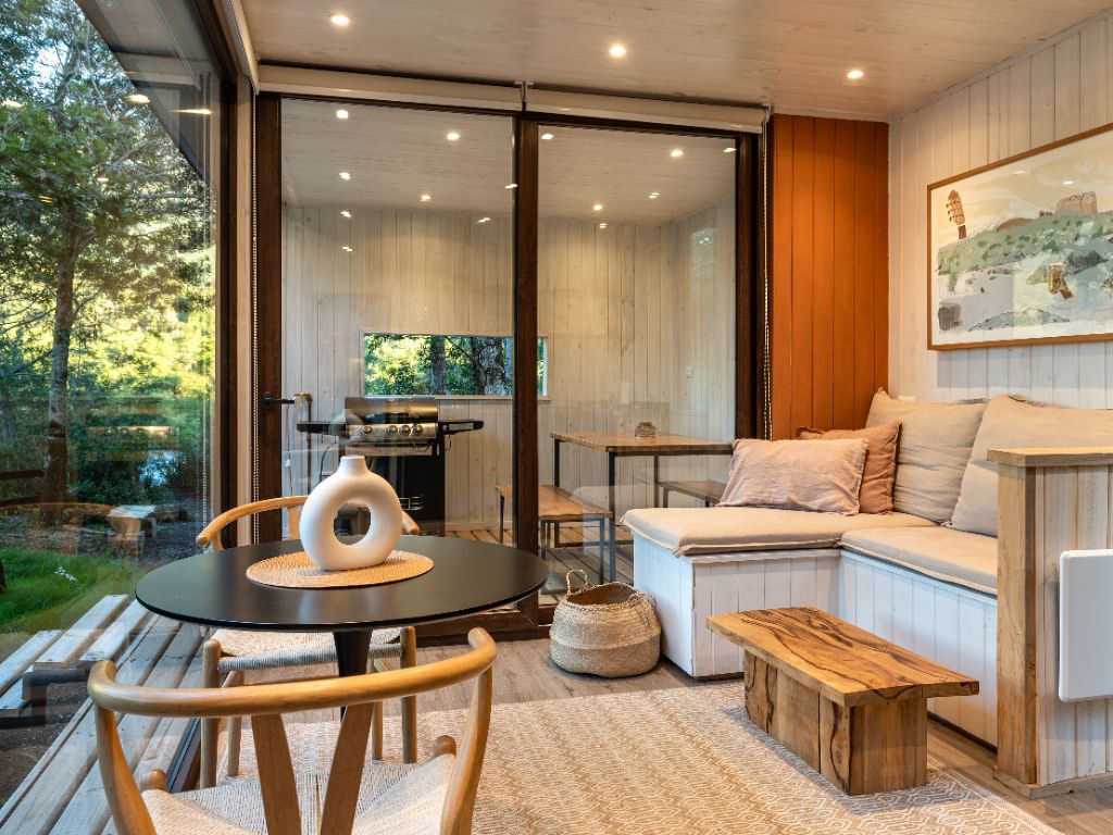 Carinthia Cabins is located on the banks of the Petrohué River, offering spectacular views of the Osorno volcano, La Picada hill and the Puntiagudo volcano. It is located between the towns of Ensenada (2 km away) and Petrohué, and just 2 km from the Vicente Pérez Rosales National Park. The cabins, with modern architecture and respectful of the environment, have two rooms: one with a king bed and the other with a one-and-a-half-size cabin. In addition, they include a bathroom with a shower, an equipped kitchen, an integrated living-dining room and a covered terrace with a barbecue.