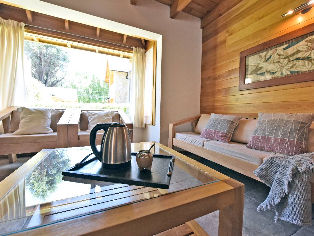 Las cabañas son acogedoras y están diseñadas con una combinación de cálidos colores y texturas. Cuentan con todas las comodidades necesarias para una estadía confortable, incluyendo cocina completa, living con TV, baño completo.