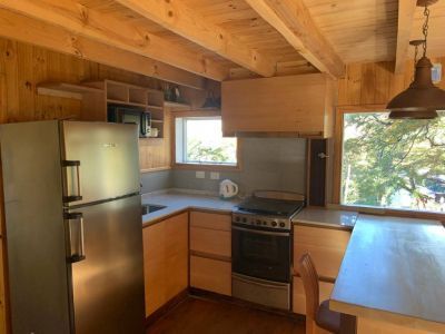 La cabaña ha sido cuidadosamente decorada, combinando elementos modernos con detalles tradicionales, lo que la convierte en un lugar de descanso perfecto para quienes buscan desconectar y rejuvenecer. Los espacios han sido diseñados para aprovechar al máximo la luz natural, creando ambientes luminosos y acogedores que invitan al descanso. Con un diseño que respeta el entorno y un mobiliario elegido con esmero, Cabaña Kaleuche ofrece una experiencia única, donde la comodidad se encuentra con la belleza natural de los alrededores.