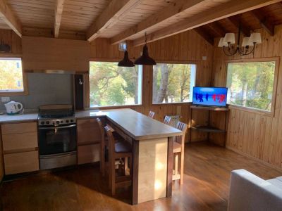 Cabaña Kaleuche, situada en el corazón de San Martín de los Andes, es un refugio encantador que se adapta perfectamente al paisaje natural que lo rodea. Este hospedaje de diseño rústico y sencillo te sumerge en una atmósfera cálida y relajante, donde la vegetación que abraza el lugar te hace sentir como si estuvieras en pleno contacto con la naturaleza. Las vistas panorámicas que se disfrutan desde cada rincón de la cabaña son un verdadero deleite, mostrando un paisaje montañoso y forestal que cambia con las estaciones, añadiendo un toque especial a la estancia.