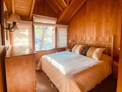 Las cabañas son amplias y totalmente equipadas, cada una con 120 metros cuadrados distribuidos en dos plantas. En la planta alta, encontrarás cómodas habitaciones en suite, cada una equipada con sommier, caja fuerte y losa radiante para garantizar tu bienestar.
