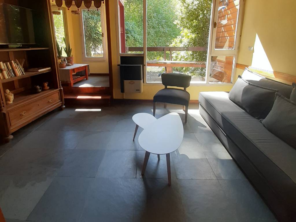 On the first floor, social area: living room and large and equipped integrated kitchen, toilet and a beautiful balcony with views of the stream, mountains and forest. Wifi.