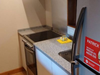 La cocina, integrada al ambiente principal, cuenta con todo lo necesario para preparar tus propias comidas: anafe, heladera, microondas y vajilla completa. Además, para tu mayor comodidad, el edificio cuenta con ascensor, bauleras y WiFi gratuito.