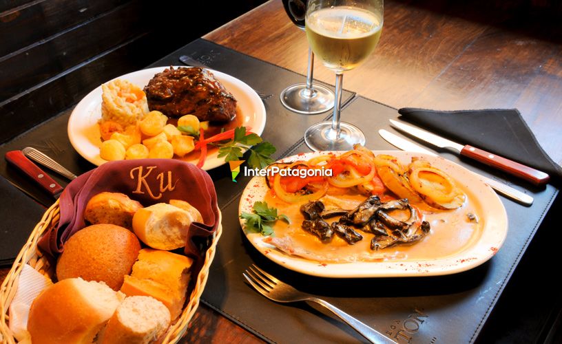 En la mesa, los fanáticos de la carne a la parrilla pidieron su bife de chorizo, de ciervo y bondiola; otros, el cordero patagónico hecho a las brasas con agregado de salsas y guarniciones. Nos hicimos eco de las palabras de Francisco acerca de la tendencia actual a incorporar la carne de búfalo y pedimos nuestra porción. “Proviene de ganado criado en zona del Ibicuy, en el delta del Paraná. Tiene un estricto protocolo de crianza y engorde y, debido a las pasturas que comen, se logra una carne magra, de sabor suave. Los consumidores exigentes la eligen por su bajo contenido de grasa y colesterol intramuscular y por sus atributos naturales.” Nuestros bifes de búfalo salieron a las tres pimientas y a la mostaza ahumada. Al llegar a la mesa, notamos que a simple vista no se distinguían demasiado de los cortes tradicionales y nos resultaron apetitosos; los acompañamientos fueron suaves y no molestaron al paladar. En estos casos, cuando en la parrilla se logra el punto de cocción, las porciones pasan a la cocina a recibir el agregado de salsa y guarniciones. Al revisar la carta notamos que las cacerolas y sartenes son tan importantes como su parrilla. Las pastas, los hongos del bosque, las truchas y hasta el cordero forman parte de la extensa variedad de ingredientes que llevan otra preparación. En los días frescos, el goulash y los guisos regionales forman parte de los sabores que ofrece la casa. Notamos el especial cuidado de los mozos por atender las necesidades de cada mesa y, como parte del buen trato, informar y recomendar cómo moverse en la ciudad y en las afueras. La paredes del local reflejan a través de viejas fotos el San Martín de los Andes que alguna vez fue aldea, con calles de tierra y acequias. Enormes toneles de madera y repisas donde descansan los buenos vinos hablan de lo importante que es el acompañamiento de las carnes con buenas etiquetas elegidas por un sommelier y enólogos. Se enorgullecen de su excelente cava y la carta exclusiva para celíacos. Bajo la dirección de la misma familia propietaria durante muchos años, el Ku de los Andes forma parte de la vida de la ciudad. Su libro de visitas es una prueba de la gran cantidad de figuras conocidas de distintos ámbitos que los felicitan y acuden en distintas ocasiones.