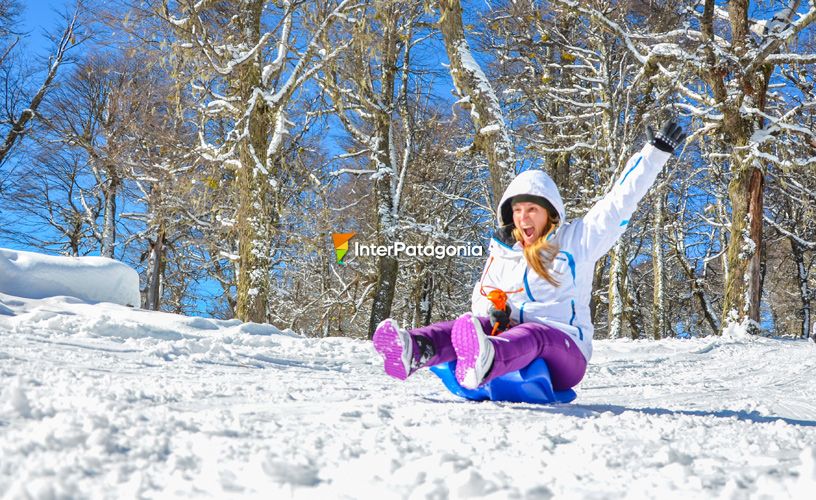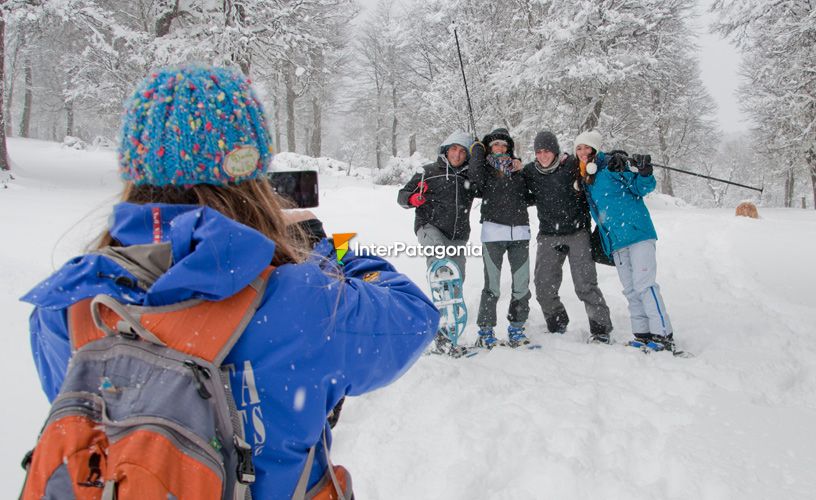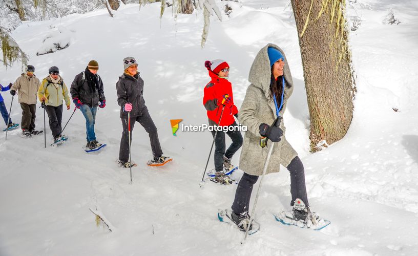 Encaramos el bosque que, según nos dijeron, cambia su fisonomía de acuerdo con las condiciones climáticas del día. Dejamos atrás las últimas casas y comenzó una leve inclinación para tomar altura. Al llegar al filo, estuvimos frente al Valle del Águila; un poco más allá, la Pradera del Puma y muy, pero muy abajo, el Mallín Grande. En un corto tiempo logramos estabilizar nuestra marcha y eso nos permitió disfrutar, sentirnos en libertad y descubrir cada uno de los rincones que los guías nos mostraban. Los ojos se nos iban detrás de cada conejo o pájaro carpintero que veíamos y que, sin tomarnos en atención, seguían su vida como si nada. Si bien los árboles no presentaban follaje por ser pleno invierno, se los veía recubiertos por abundante barba de viejo, un liquen que solo puede vivir en aquellos sitios donde existe gran oxigenación. Con las grandes nevadas, las plantas arbóreas y su huésped se tapizan de nieve seca y forman un conjunto muy atractivo. Caminamos sobre piso duro, ya transitado por otros, pero también sobre nieve blanda, esponjosa. La sensación de hundir el pie en un lugar donde nadie antes lo hizo no es fácil de explicar. El sonido es distinto, el color dentro de los orificios que se forman es otro, de tono celeste. Todo nos resultó muy divertido y hasta celebramos alguna caída sin consecuencias. Llegamos al iglú, una casita hecha con paneles de nieve, al cual ingresamos. Nos sentamos para tomar un rico té con alfajores regionales y un licor de chocolate. Momento de descanso pero también de charlas y comentarios acerca de lo vivido, luego de atravesar arroyos y abrir sendas para seguir. El regreso fue muy tranquilo, en descenso, y desde un mirador observamos el lago Lácar, lejano pero imponente. Nos esperaba una sorpresa: nos entretuvimos en una pista para trineos con los “culipatines” o “deslizadores”. Sin importar la edad, uno a uno todos hicimos nuestra experiencia, con las consabidas risas y sin inhibiciones. Una vez en la base del cerro, la despedida fue en la ruka mapuche de la comunidad Curruhuinca, donde saboreamos algunas de sus especialidades. Todos convinimos en que la “raqueteada” había sido muy divertida y nos había llevado a lugares que no hubiéramos conocido sin nuestros guías.