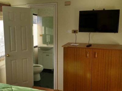 Brinda amplias habitaciones, cada una cuenta con televisor, cajoneras, ropa de cama y baño privado.
