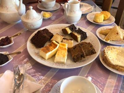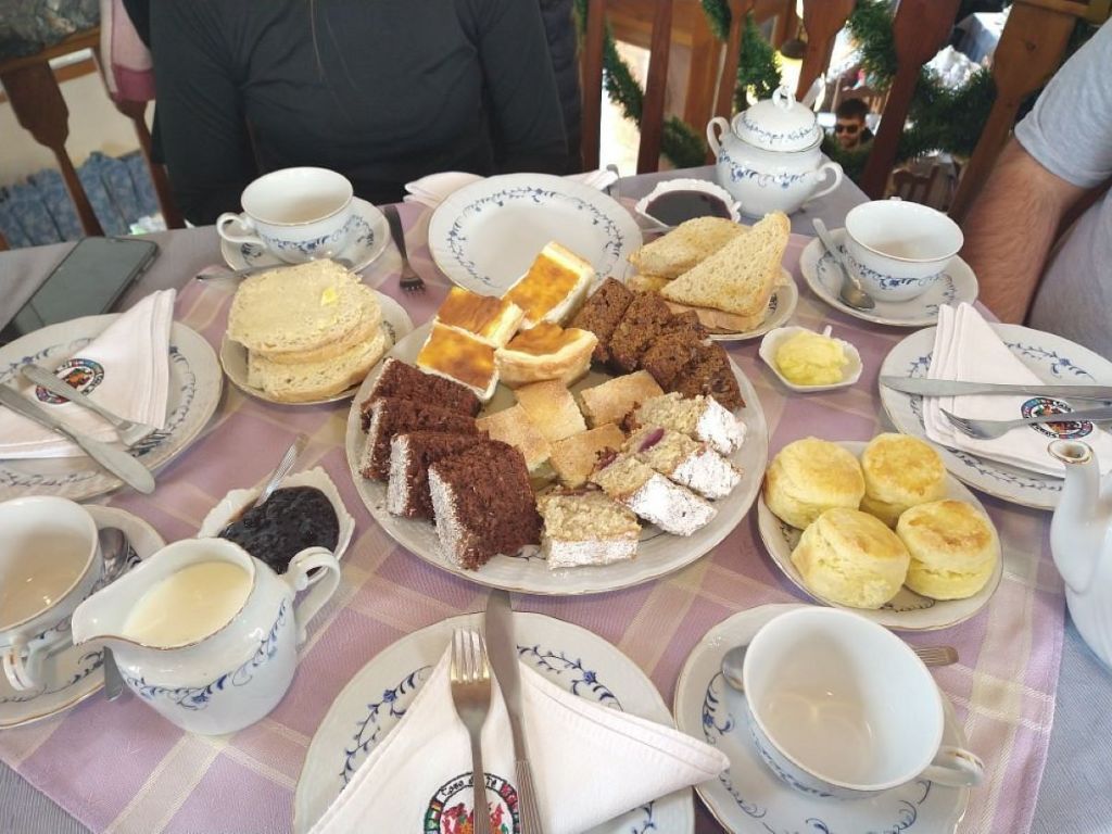 El menú es un verdadero homenaje a la repostería galesa. Los aromas de tortas negras, scones recién horneados, tarta de crema y mermeladas caseras llenan el aire, acompañados por tazas de té aromático servido en vajilla fina. Todo está preparado con ingredientes frescos y locales, reflejando la esencia artesanal de la cocina regional.