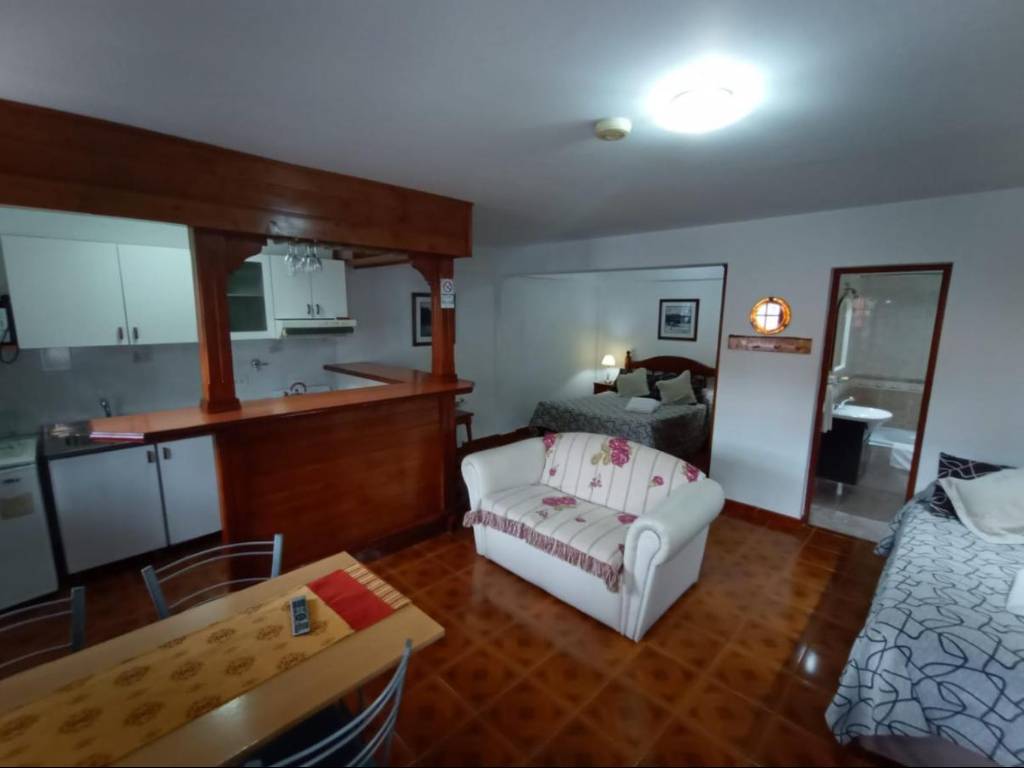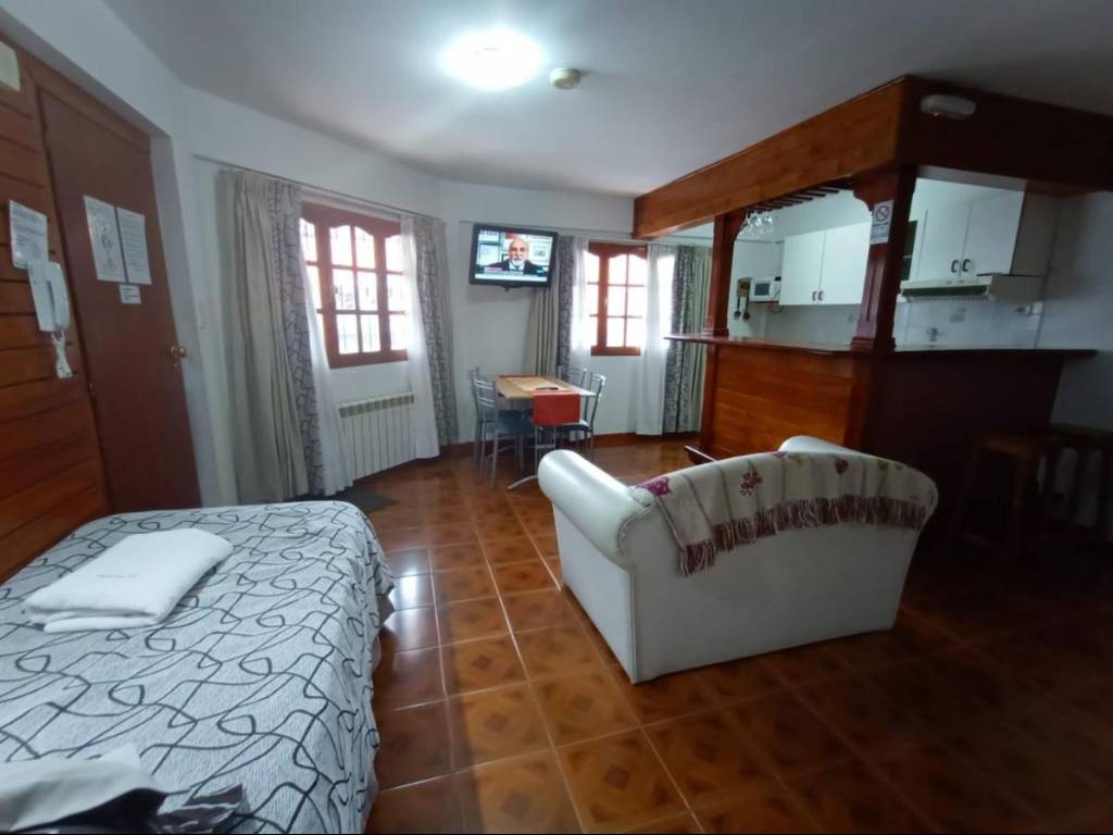 Apart Hotel Cabo San Diego ubicado en el centro de la ciudad a 250 metros de la Avenida principal donde se va encontrar con comercios, restoranes, chocolaterias, etc. Las habitaciones están equipadas, cuentan con wifi gratuito, calefacción central por radiadores de agua, y baño privado con bañera.