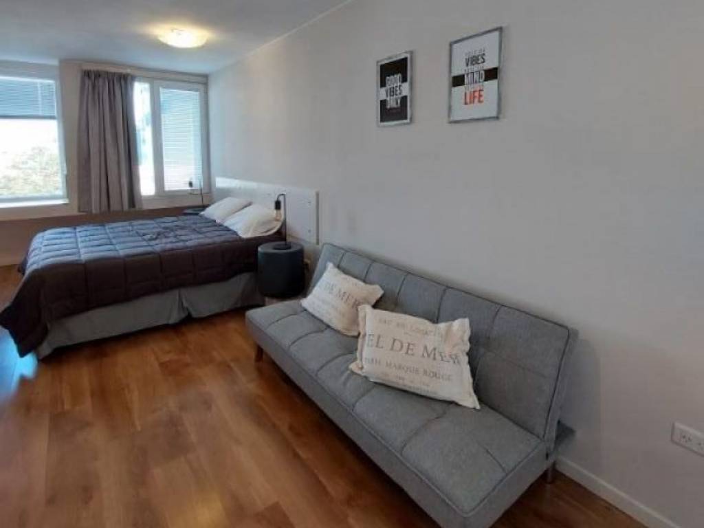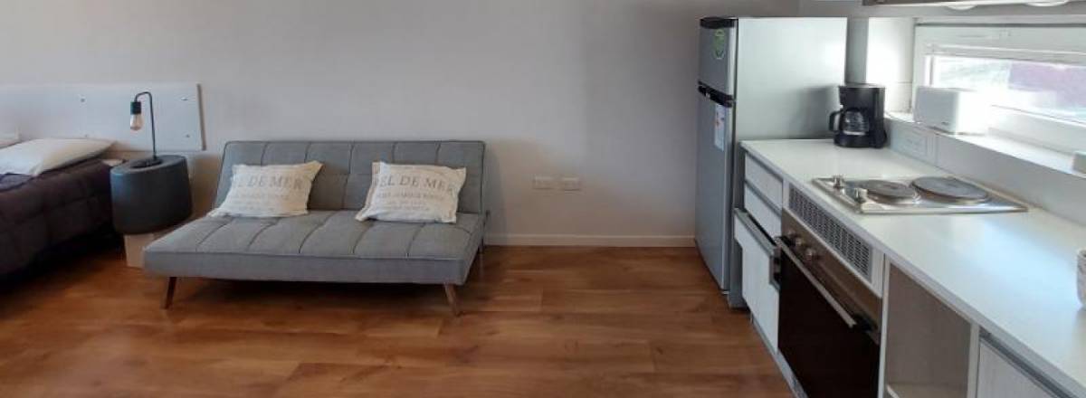 The apartment is fully equipped, distributed in a single environment. It has a full kitchen, sofa bed, double bed and private bathroom.