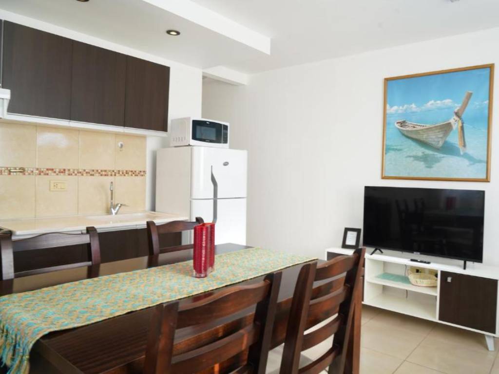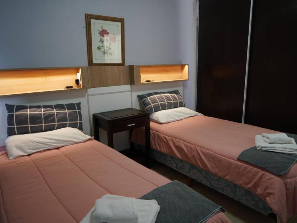 Dispone de 1 habitación, cuenta 2 camas individuales y un sofá cama. Se encuentra equipado con TV por cable, WiFi, heladera con freezer, microondas, tostadora, hervidor de agua eléctrico, anafe, horno y todos los utensilios básicos para cocinar.