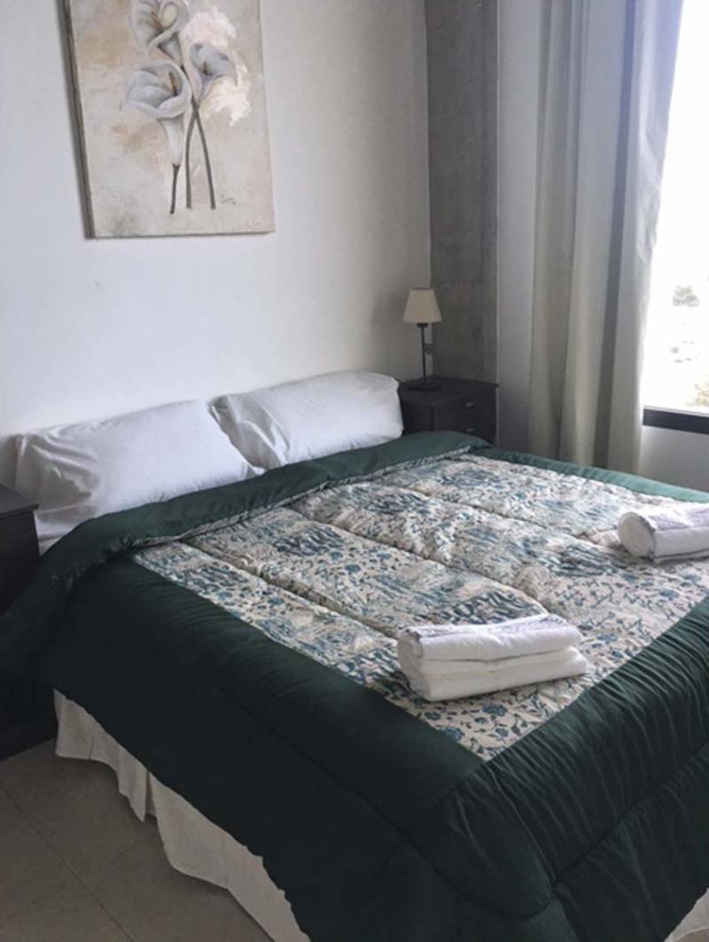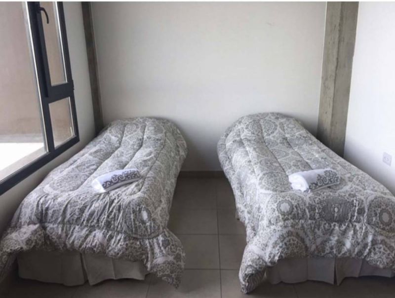El departamento cuenta con dos habitaciones (una con una cama matrimonial, la otra con dos camas sommier individuales), dos baños completos (secador de cabellos, amenidades, jabon, shampoo, acondicionador).