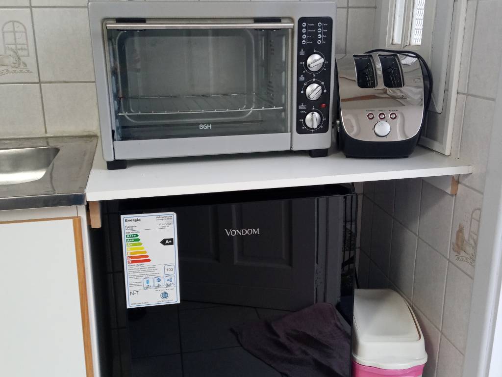 Horno a gas y eléctrico. Frigobar. Tostadora y pava eléctricas.