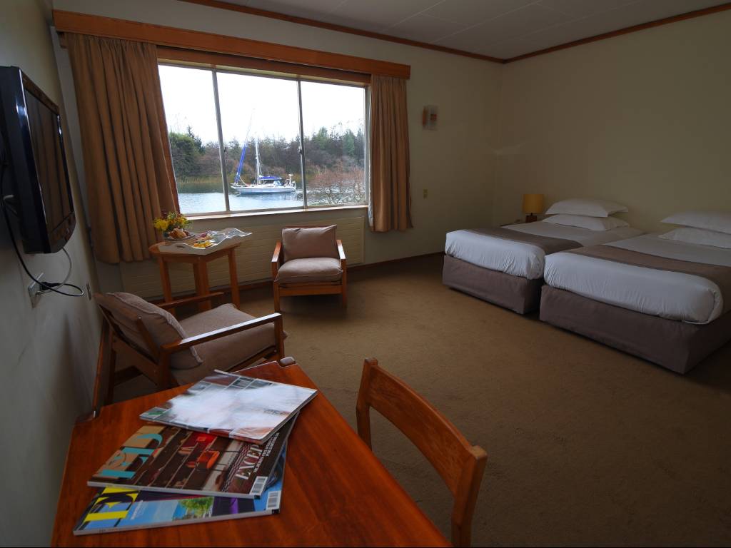 The hotel offers rooms overlooking the Haverbeck Canal, equipped with a flat-screen TV, free WiFi and breakfast, and also has a large garden with a swimming pool and a terrace overlooking the Valdivia River.