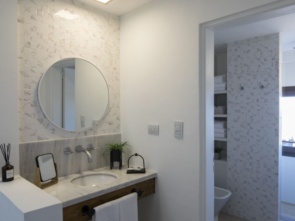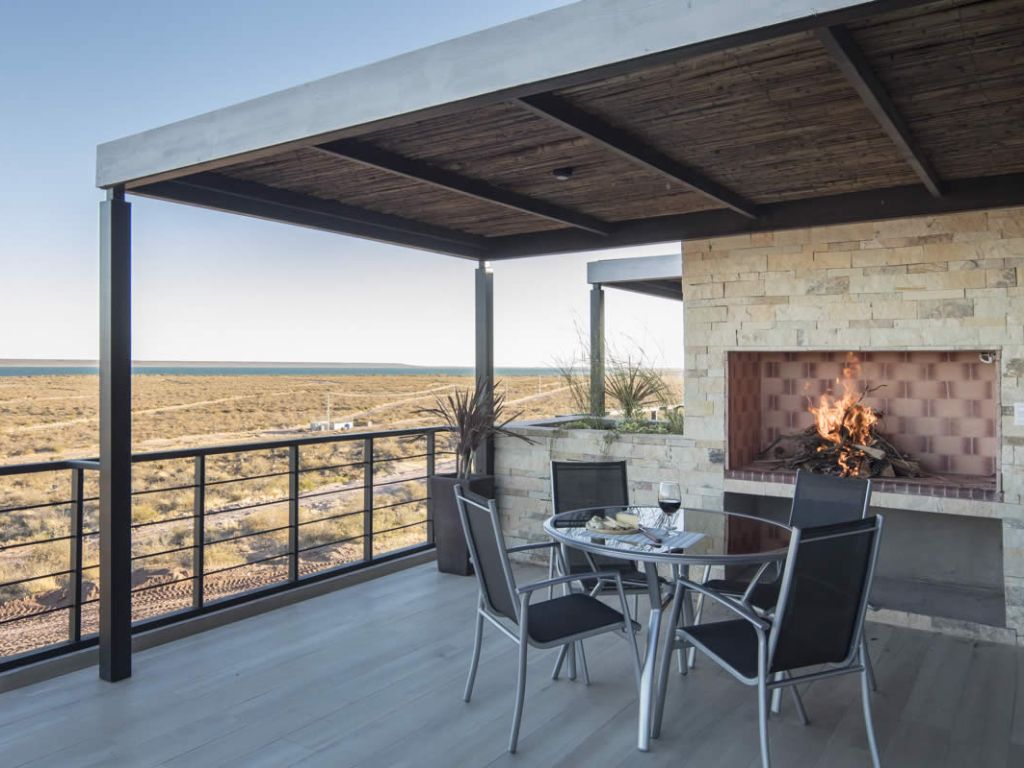 While the upper floor includes a living room with a fireplace, Smart LED TV, a table for 4/6 people; a fully equipped kitchen with under-counter refrigerator and breakfast bar, toilet and terrace with a semi-covered grill with outdoor furniture.