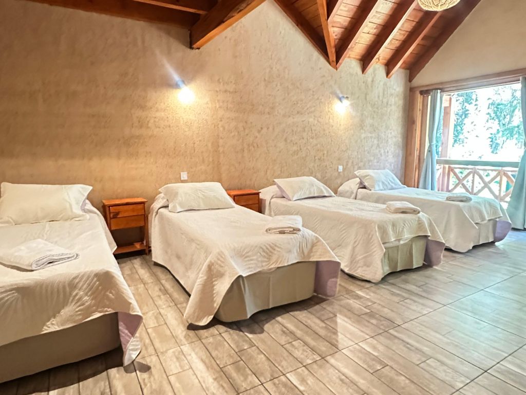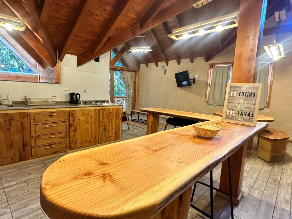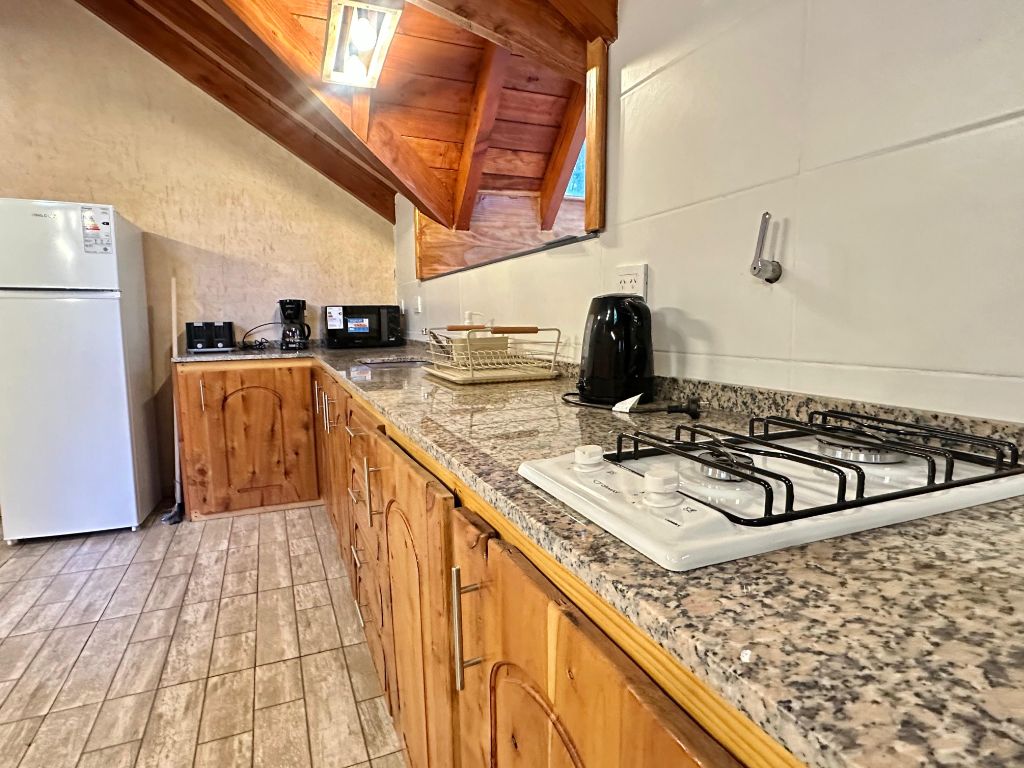Nuestros apartamentos son la opción ideal tanto para escapadas románticas como para viajes familiares, con capacidad para 2, 4 y hasta 6 personas. Cada unidad ha sido pensada para el descanso absoluto, contando con un balcón privado desde donde podrás contemplar la belleza de la cordillera y una TV de pantalla plana para tus momentos de relax tras un día de aventura en el Cerro Bayo o el Camino de los Siete Lagos.