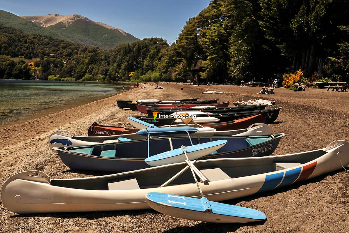 Sitio elegido por los habitantes de Villa La Angostura en la estación estival, se accede a él por la R.N. nº 231 en dirección al camino de Siete Lagos. Luego de recorrer 4 kilómetros y medio, se debe tomar el desvío a mano izquierda que lleva directamente al balneario del lago Correntoso, el cual cuenta con un completo camping. Una vez que nos encontramos en el sector, pudimos disfrutar de las cristalinas aguas del lago, que resultan ideales para zambullirse porque son más cálidas que las del lago Nahuel Huapi. Además de natación, se puede desarrollar actividades náuticas como remo, kayak, canotaje e incluso paseos en lancha, pero con una velocidad moderada. En la playa, que presenta arenas de origen volcánico, se realizan deportes como beach volley, tejo y fútbol 5. Además se organizan cabalgatas por la costa. El camping del balneario está totalmente equipado para recibir a los turistas: cuenta con buenos espacios de sombra para poner las carpas, agua potable, baños y comercios que están abiertos durante el día y venden comidas rápidas.