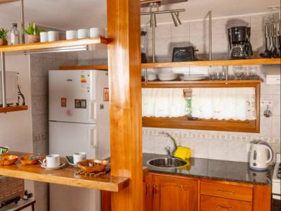En la planta alta cuenta con 1 habitación con cama matrimonial y vista al lago, baño y 1 habitación con 2 camas individuales.