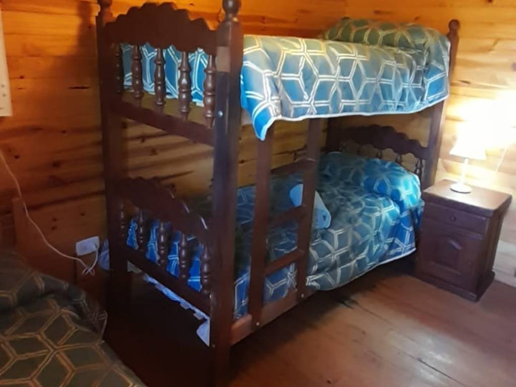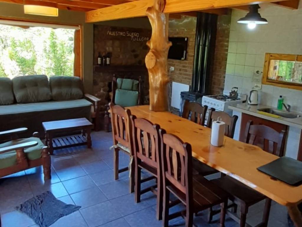 La Cabaña de Troncos y Piedras cuenta con un baño, cocina, comedor y estar en planta baja, y dos dormitorios en la planta alta. El dormitorio principal tiene salida al balcón, mientras que el segundo dispone de una cama cucheta y una cama adicional de una plaza. Está equipada para 6/7 personas y ofrece TV LED Smart de 32”, conexión WiFi STARLINK, parrilla, estacionamiento junto a la cabaña, sábanas, toallas, toallones, calefacción a gas y leña, microondas y tostadora eléctrica.